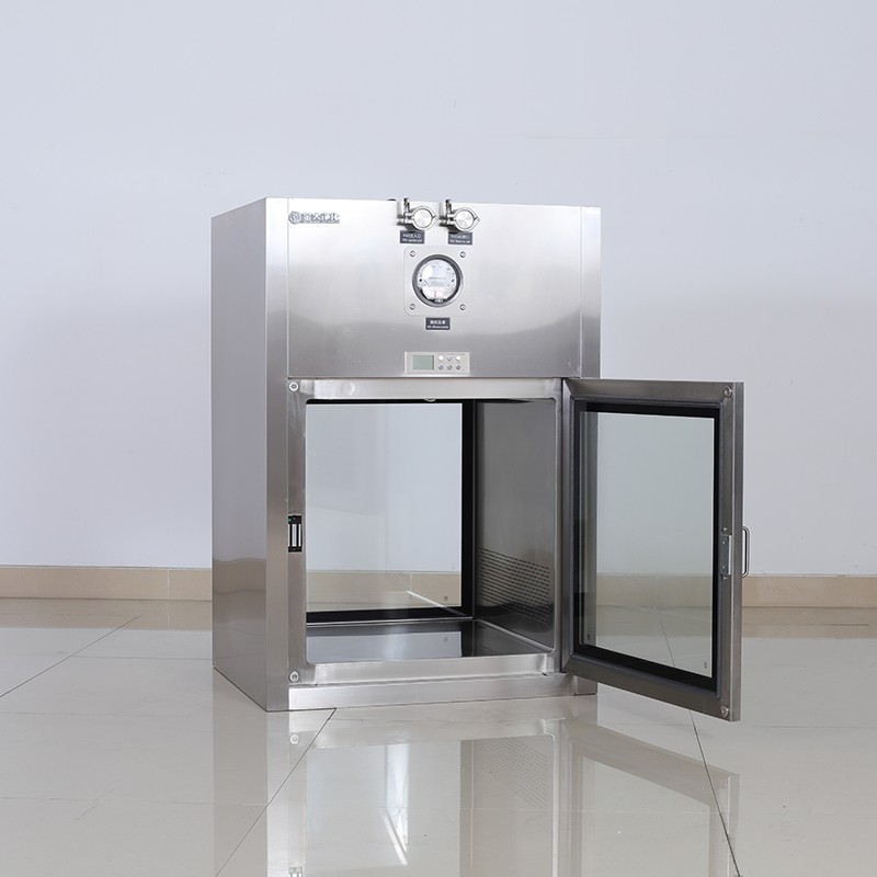 3. Transfer penceresini temizleyin: Kapılardan birini açın, malları transfer penceresine koyun, her iki kapıyı da kapatın ve fan anahtarını açın. Fanın sesini duyduktan sonra iç havanın temizlenmesi yaklaşık 5-30 dakika sürecektir.